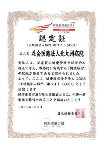 社会医療法人北九州病院(以下、当法人)は、経済産業省が創設した「健康経営優良法人認定制度」において、7年連続で「健康経営優良法人(大規模法人部門)」に認定されました。